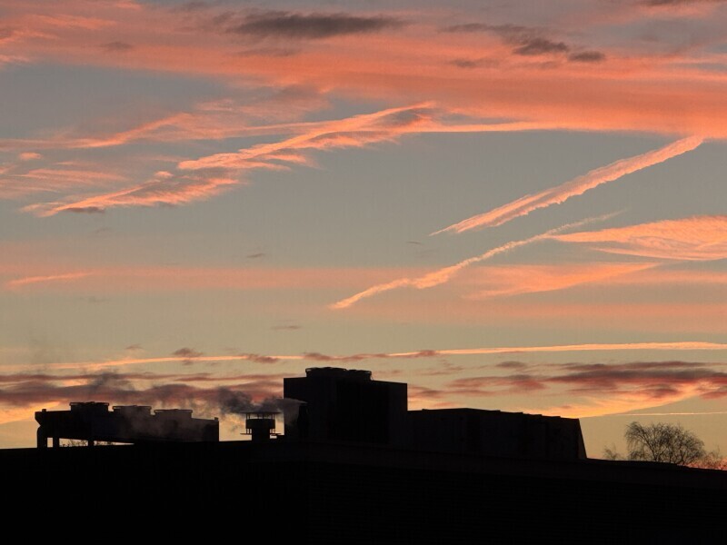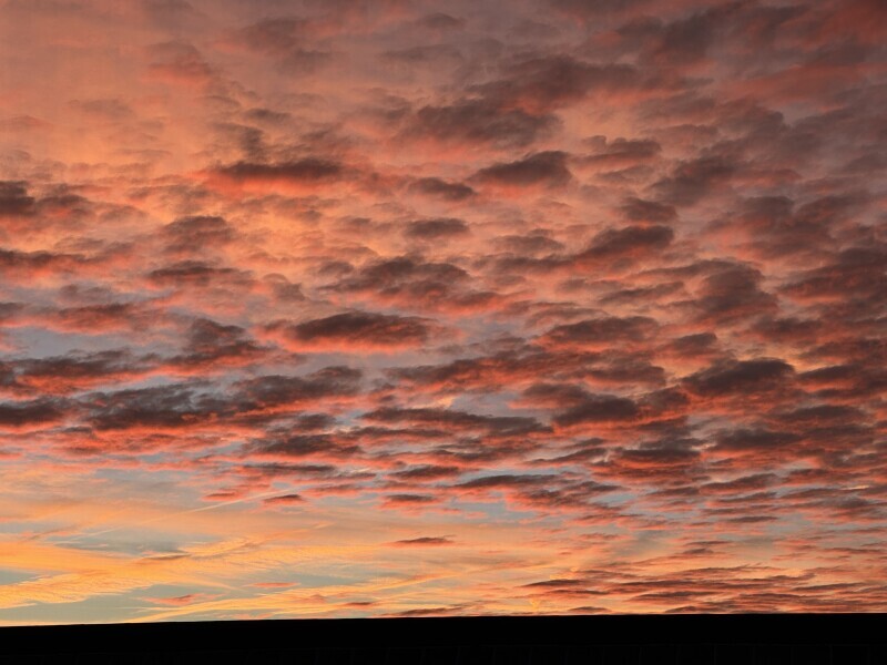 Een frisse ochtendstart met middelbare bewolking gaf fenomenale luchten. In de namiddag volgde inderdaad een storing met regen. "Ochtendrood, water in de sloot". Ochtendrood komt door flinke hoeveelheden vocht in de lucht.