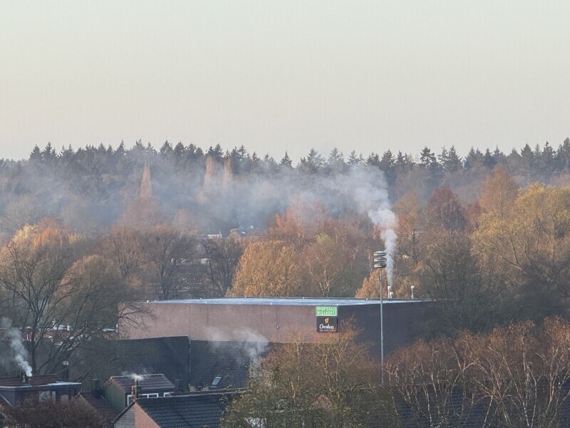 Een vorstige start van de ochtend. De rookpluim verraad precies waar de grondinversie zit, daar waar hij begint af te buigen.