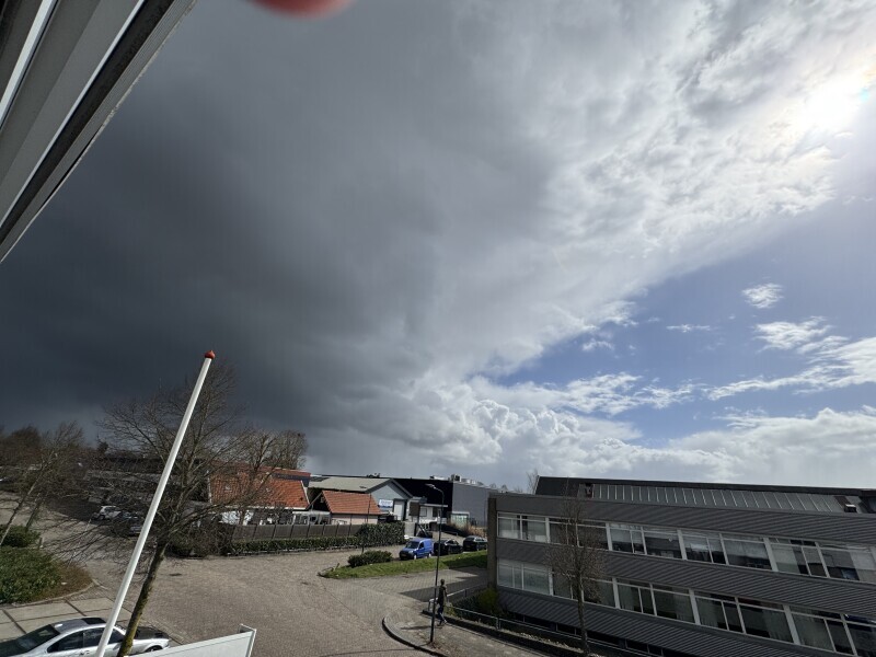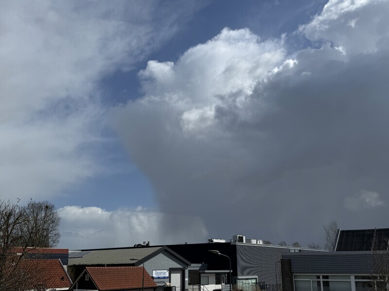 Een stevige bui komt vanaf links binnendrijven aan het begin van de middag.